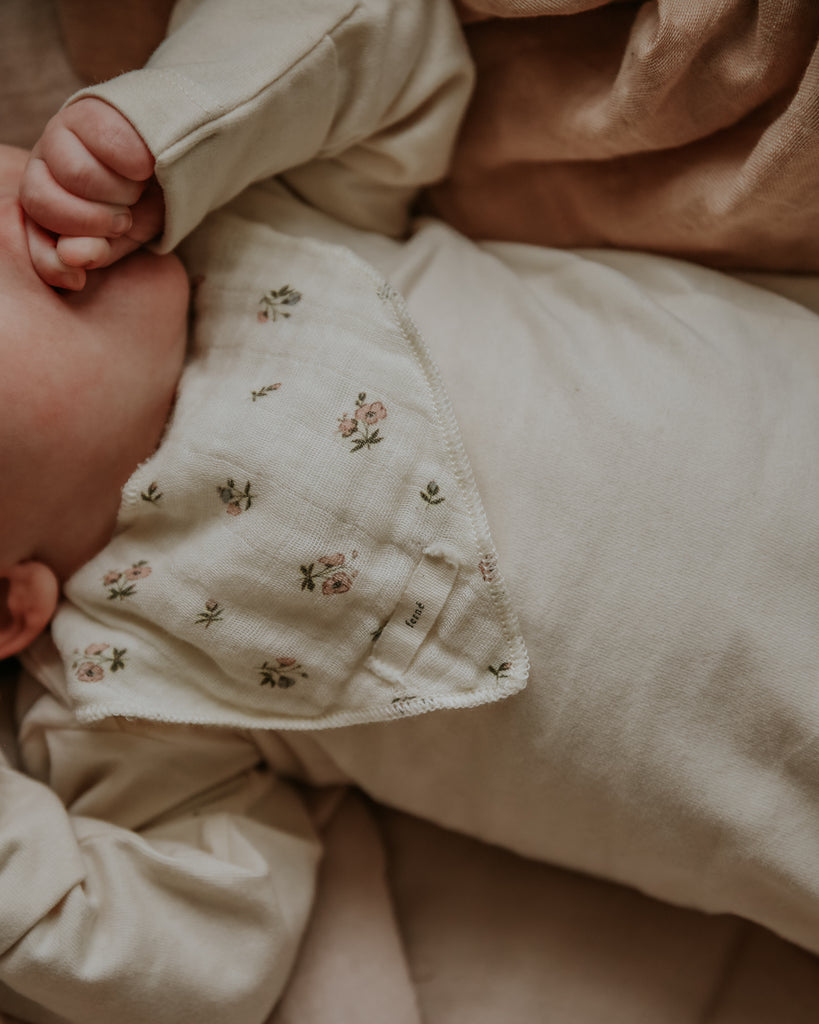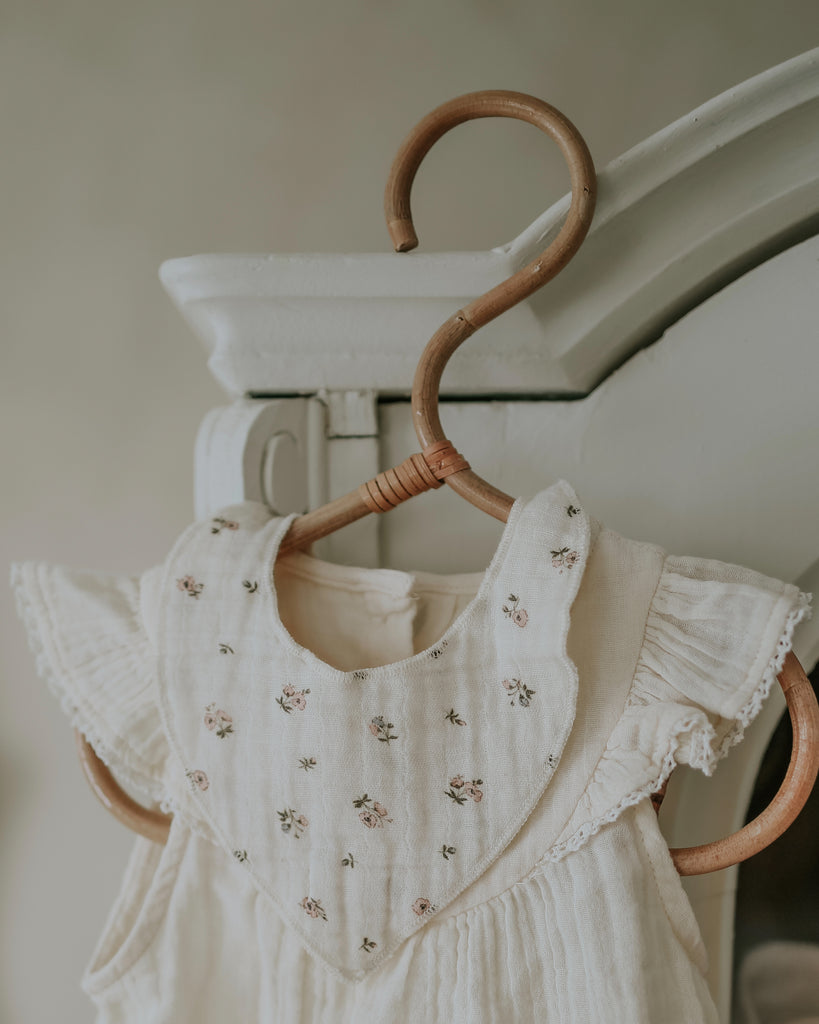Made from super soft naturally absorbent cotton; a lovely way to style and catch your babies drool.