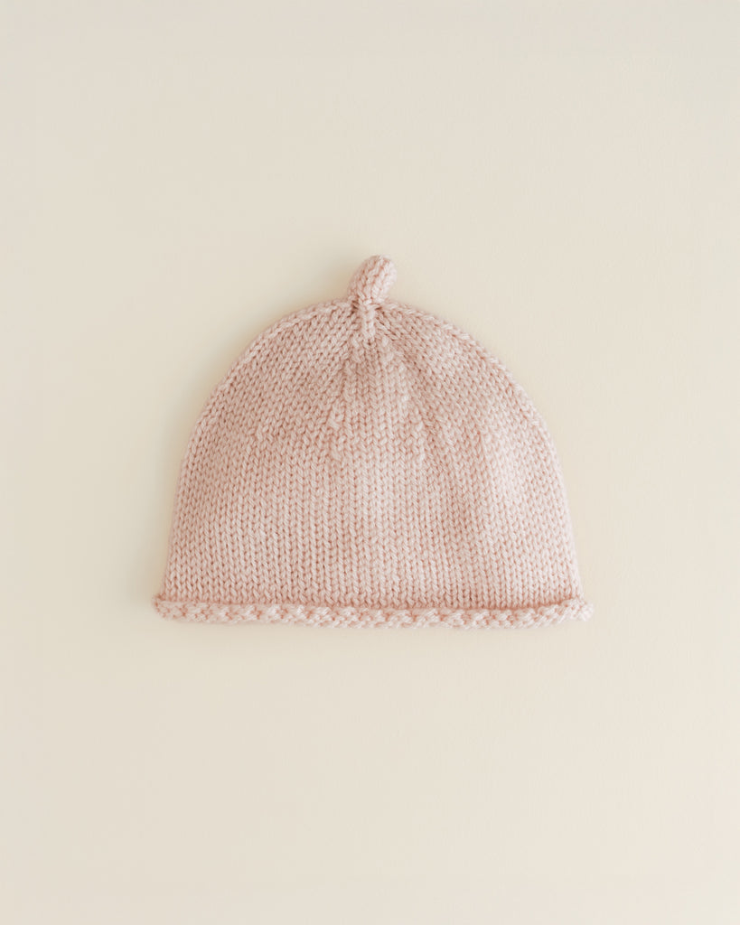 A pointy tipped, washable merino wool beanie; designed to be worn above or slightly over the ears.